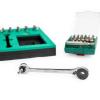 - Chave Catraca para Bits, Soquetes e Acessórios feitos em liga de Aço cromo vanádio (Cr-V) para resistência e durabilidade excepcionais.