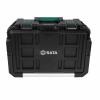 A nova linha de Caixas de Armazenamento SATA foi desenvolvida para profissionais que exigem organização, resistência e mobilidade no dia a dia da manutenção industrial, construção civil e trabalhos técnicos em geral.Fabricadas em polipropileno de alta resistência, as caixas SATA suportam impactos e uso intenso, protegendo ferramentas e acessórios mesmo nos ambientes mais exigentes. O sistema modular permite que cada caixa seja utilizada individualmente ou interconectada a outras caixas, formando uma torre de armazenamento prática, segura e portátil, inclusive com opção de deslocamento sobre rodas.Reconhecida mundialmente por sua qualidade, durabilidade e performance, a SATA entrega uma solução completa para quem precisa transportar e organizar ferramentas com eficiência, segurança e profissionalismo.