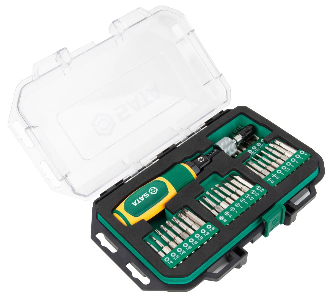 - 32 bits com fendas, phillips, hexagonais e torx, em diversos tamanhos para diferentes aplicações.