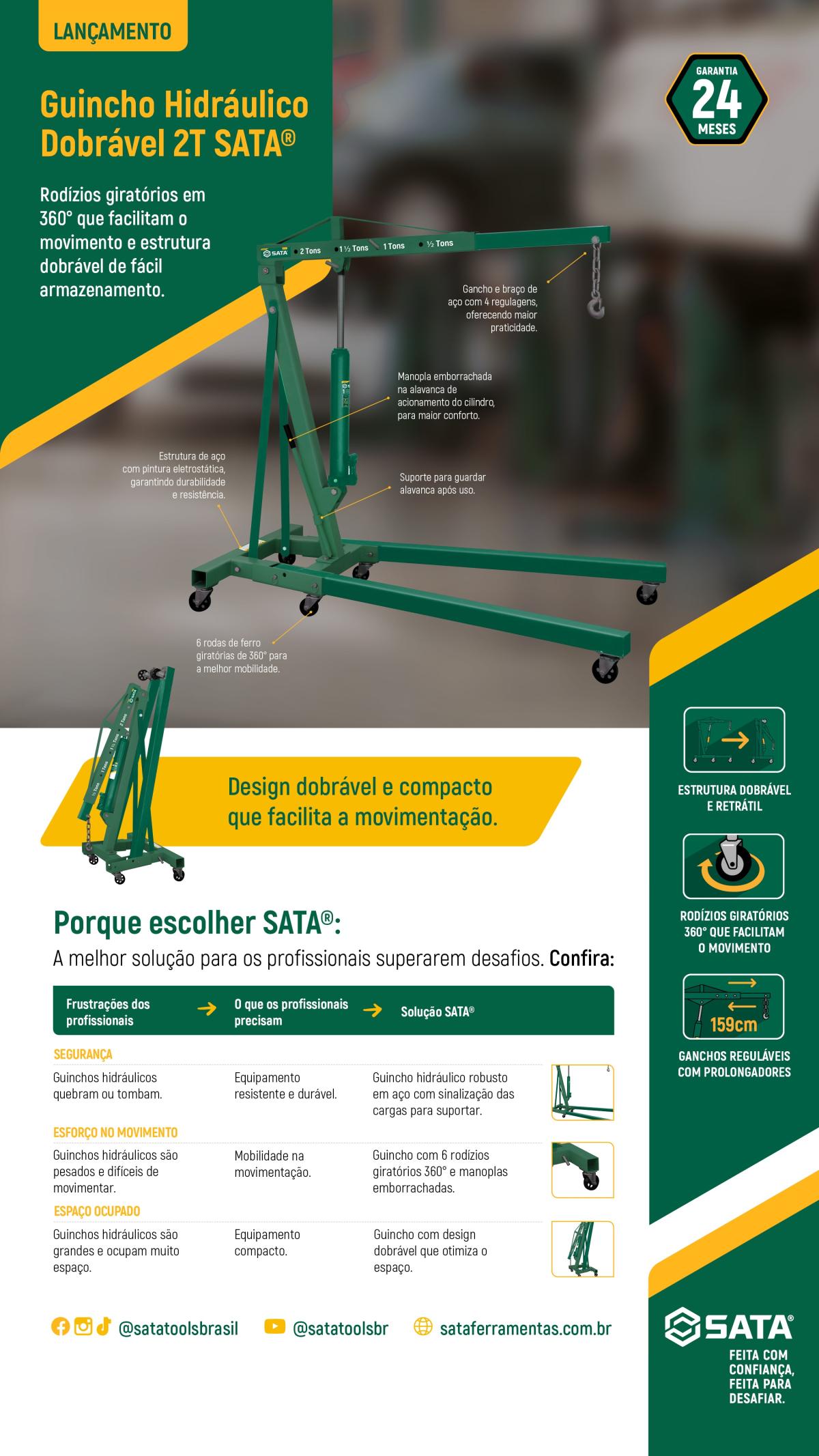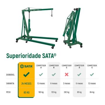 O Guincho Hidráulico 2T SATA - SCAE5843-LA de alta qualidade SATA®️ conta com uma estrutura em aço reforçada com pintura eletrostática garantindo durabilidade e resistência.