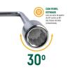 - Com perfil estriado, com um arco de aperto de 30º contra os 60º das chaves de biela convencionais.