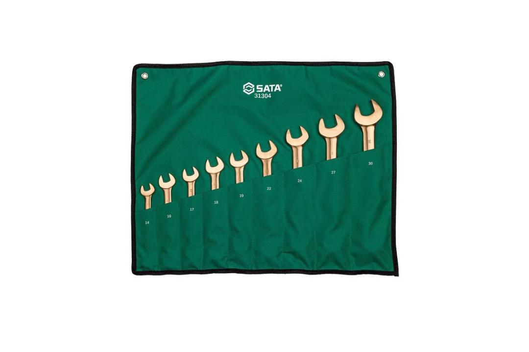 - Itens inclusos:1-JOGO DE CHAVES COMBINADA ANTIFAÍSCANTE 9PÇ SATA - ST313042- Composto pelas chaves combinadas: 14, 16, 17, 18, 19, 22, 24, 27 e 30 MM