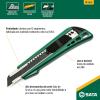 SATA INOVA MAIS UMA VEZ com a linha completa de Estiletes Profissionais. O Estilete Retrátil 18mm SATA - ST93422A oferece máxima praticidade e segurança devido à sua lâmina com 8 segmentos que com um simples gesto, é possível quebrar um segmento e ter uma lâmina nova e afiada, garantindo uma eficiência contínua, além de evitar acidentes causados por lâminas cegas, sendo indispensável para profissionais que lidam com cortes precisos em pisos vinílicos, papéis de parede, drywall e carpintaria em geral.Fabricada em SK2, a lâmina proporciona resistência e durabilidade excepcionais, enquanto o guia de lâmina em aço garante precisão máxima em cada corte.O corpo fabricado em ABS, é leve e resistente, sendo projetado para o conforto e satisfação do usuário durante o uso.