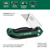 SATA INOVA MAIS UMA VEZ com a linha completa de Estiletes Profissionais. O Estilete Profissional Reforçado Dobrável 18mm - ST93647 possui um design dobrável inovador, compacto, fácil de transportar e seguro, oferecendo máxima praticidade e eficiência, sendo indispensável para profissionais que realizam cortes precisos em indústrias, almoxarifados, carpintaria e elétrica no geral.Sua lâmina trapezoidal, fabricada em SK2, garante alta precisão, resistência e durabilidade excepcionais. O estilete também conta com um botão para troca rápida e fácil das lâminas, otimizando o fluxo de trabalho.Máxima segurança e controle, possui um mecanismo de trava na lâmina, permitindo mantê-la totalmente aberta ou fechada conforme a necessidade do usuário. Construído com um corpo de alumínio robusto e um cabo emborrachado ergonômico, este estilete oferece conforto e durabilidade superior.