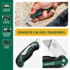 - Segurança e Controle: Trava para manter a lâmina na posição aberta ou fechada.