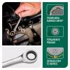 Sua catraca de 72 dentes proporciona um arco de giro de apenas 5°, permitindo uso em espaços reduzidos e de difícil acesso. O design preciso garante encaixe firme nos parafusos, evitando desgaste das peças e proporcionando mais segurança durante o aperto e desaperto.