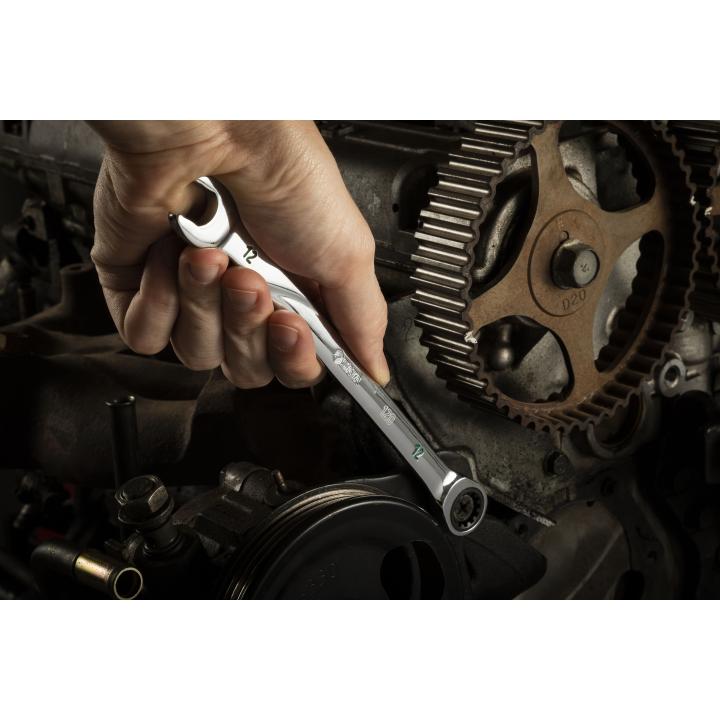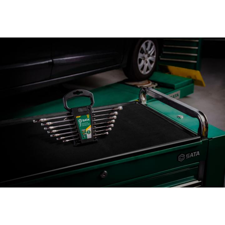 Sata® foi a marca que criou a chave com catraca e inova mais uma vez, Chaves combinadas com catraca 120xp SATA são essenciais para a ergonomia e agilidade nas oficinas mecânicas e empresas de manutenção, oferecem a vantagem de apertar / soltar o parafuso com apenas 3 graus de área livre, sem precisar ser retirada cada vez que houver um obstáculo no percurso, tornando-a uma chave perfeita para oficinas que trocam peças de difícil acesso.Novo jogo de chave combinada com catraca com tecnologia 120xp, a única no Brasil!