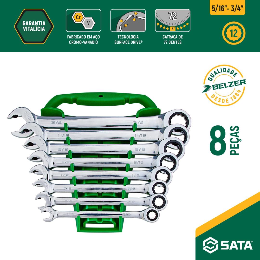 Jogo Chave Combinada Speedy Catraca 5/16 À 3/4" 8 Pç - ST09034G