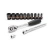- Os soquetes de tamanho duplo funcionam com fixadores polegadas e milimetros.