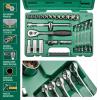 - Jogo Chave e Soquete Sextavados e Estriados de 1/2" pol com 25 peças SATA com catraca reversível e chaves combinadas com estrela em ângulo de 15° para melhor acesso e soquetes estriados com perfil "off-corner" oferecendo maior distribuição de força no corpo do soquete e no parafuso para não espanar.Neste jogo você também encontra:Chaves Combinadas com estrela em ängulo de 15°Soquete para velaSoquetes EstriadosJunta UniversalJogo de qualidade profissional superior todo fabricado aço cromo vanádio, material resistente oferecendo durabilidade e confiança para o trabalho diário. Sua mala organizadora facilita o transporte, armazenamento e principalmente a rapidez para encontrar a ferramenta ideal para o trabalho.Utilizado e recomendado por mecanicos profissionais este jogo é ótima opção para quem precisa de recursos para manutenção, montagem / desmontagem ou reparos de grandes ou pequenos trabalhos.